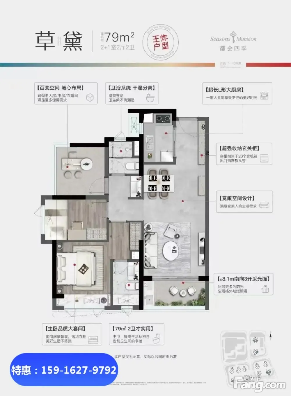 房屋拥有相对宽松的尺寸,布局通透,动静分离,设计豪华