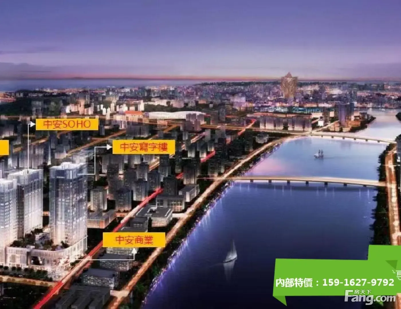 【交通价值】项目拱北口岸、广珠轻轨终点站及港珠澳大桥出入口不到5, 项目属于轻轨及港珠澳大桥双重价值叠加物业。 【综合体价值】拱北地段16万平米综合体项目,融中安SOHO、 中安商业、中安办公、中安酒店等四大业态相互促进、繁荣,给你足不出户生验;