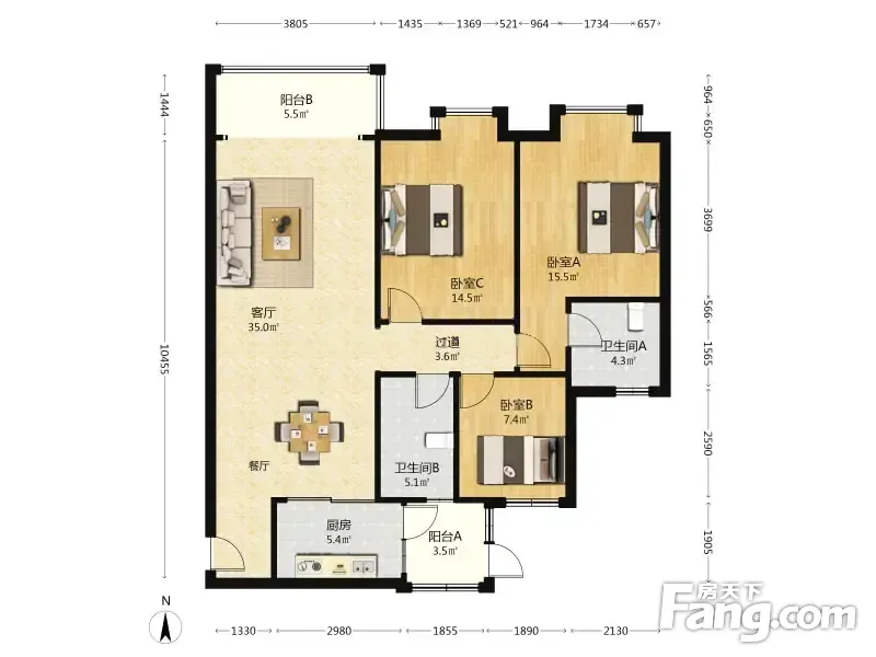 3室2厅1卫