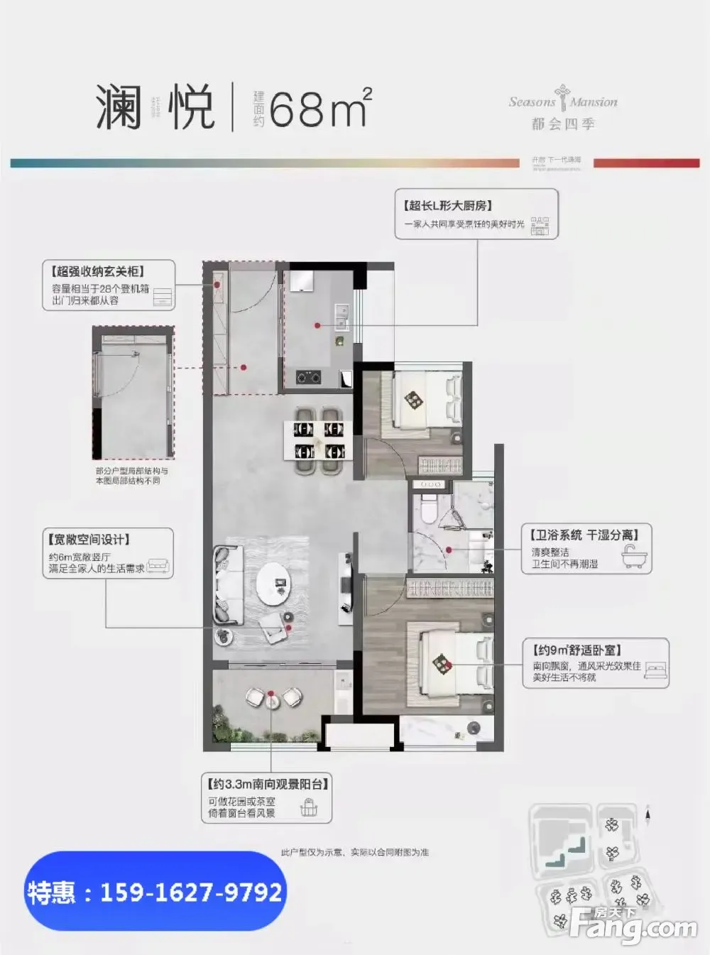 1、万科横琴【都会四季】项目地处珠海横琴新中心,规划的横琴中心级总部基地; 2、是区域内70年产权的住宅项目,3线上盖,距离珠海地标新经济总部大厦约500米 3、距离港珠澳大桥落桥点1.5公里,距离金融岛(澳门证券交易所)3公里 4、横琴口岸5公里;楼盘占地8.13万平方米 5、一共有13栋高层住宅+4.5万方印象城购物中心+配建有首都师范附属。 1、户型有68平米的两房 2、79平米的南向3房2卫、 3、89平米的南向3房2卫、 4、99平米的南北通4房2卫,送全屋装修