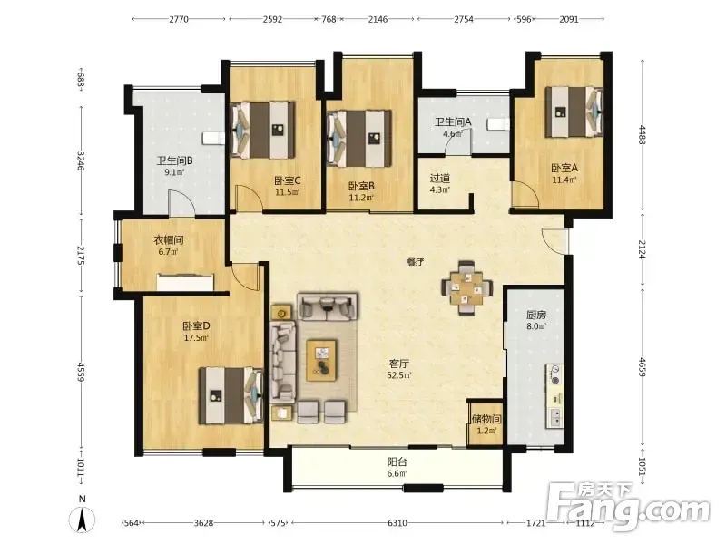 珠宾花园 4室2厅 134.66平