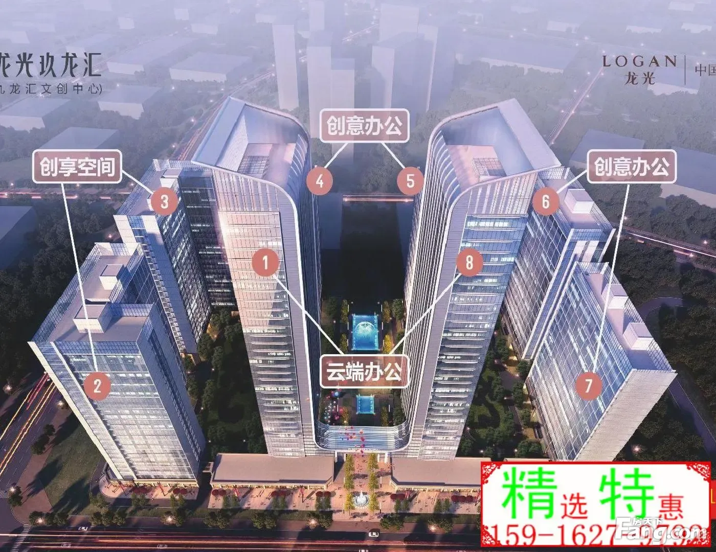 当红湾区资产·龙光玖龙汇 ——————————— 总栋数:8栋 总占地面积:49752.6?㎡ 总建筑面积:330814.44?㎡ 在售栋数:2栋、4栋 总层高:2栋24层、 总户数:3062户 车位:2488?个 在售面积: 单层层高/面积 2栋,37-42平米(2-23?层高?3.9?米、) 4栋、150平米写字楼4.5米层高