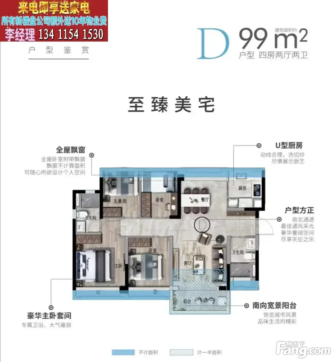 急售 美的宝龙城仅113万99平四房朝向视野开阔采光好