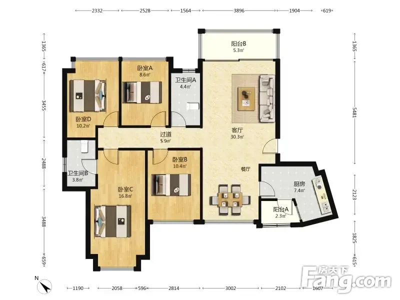 户型齐全,主打明卫,双阳台三居