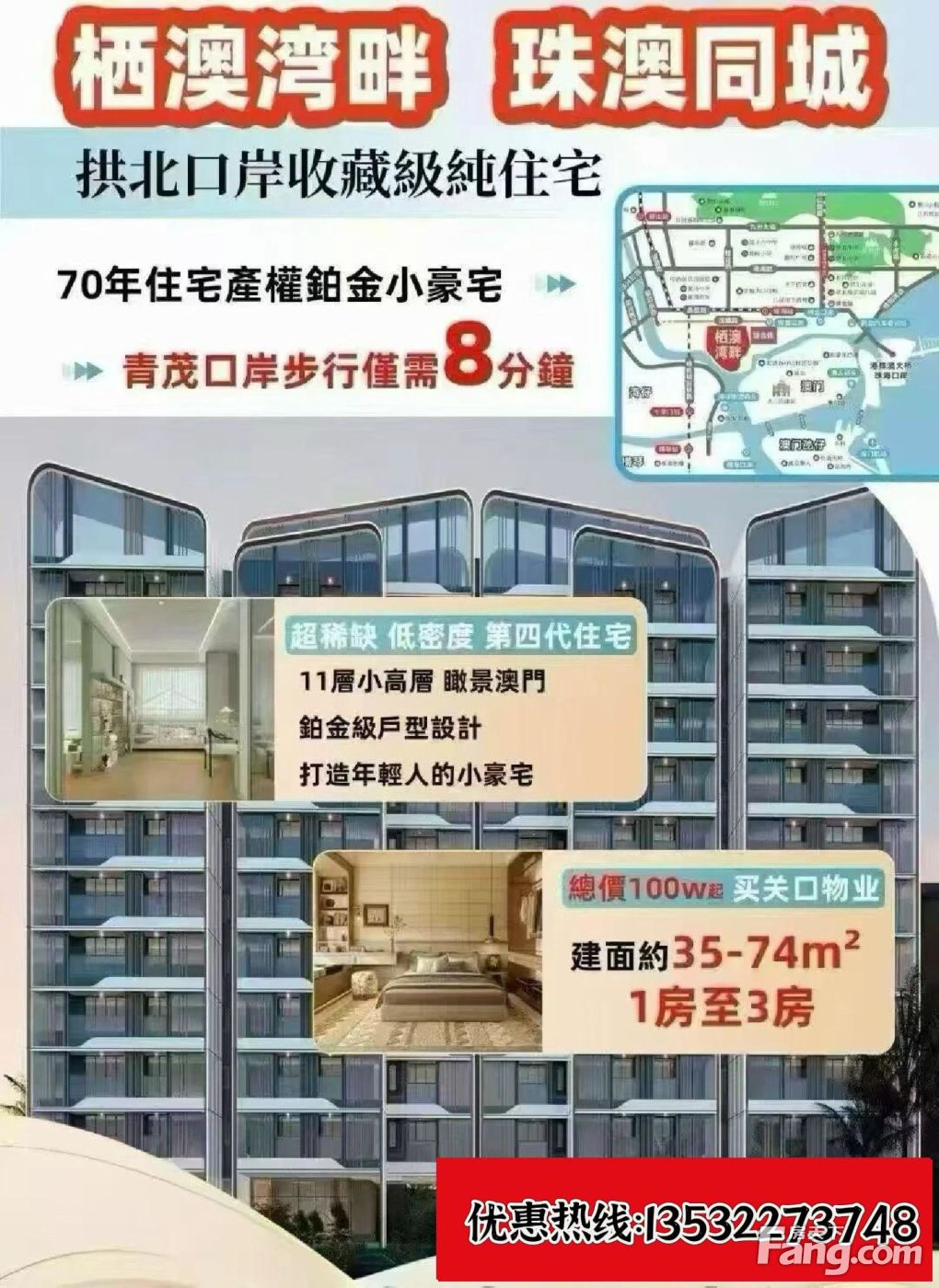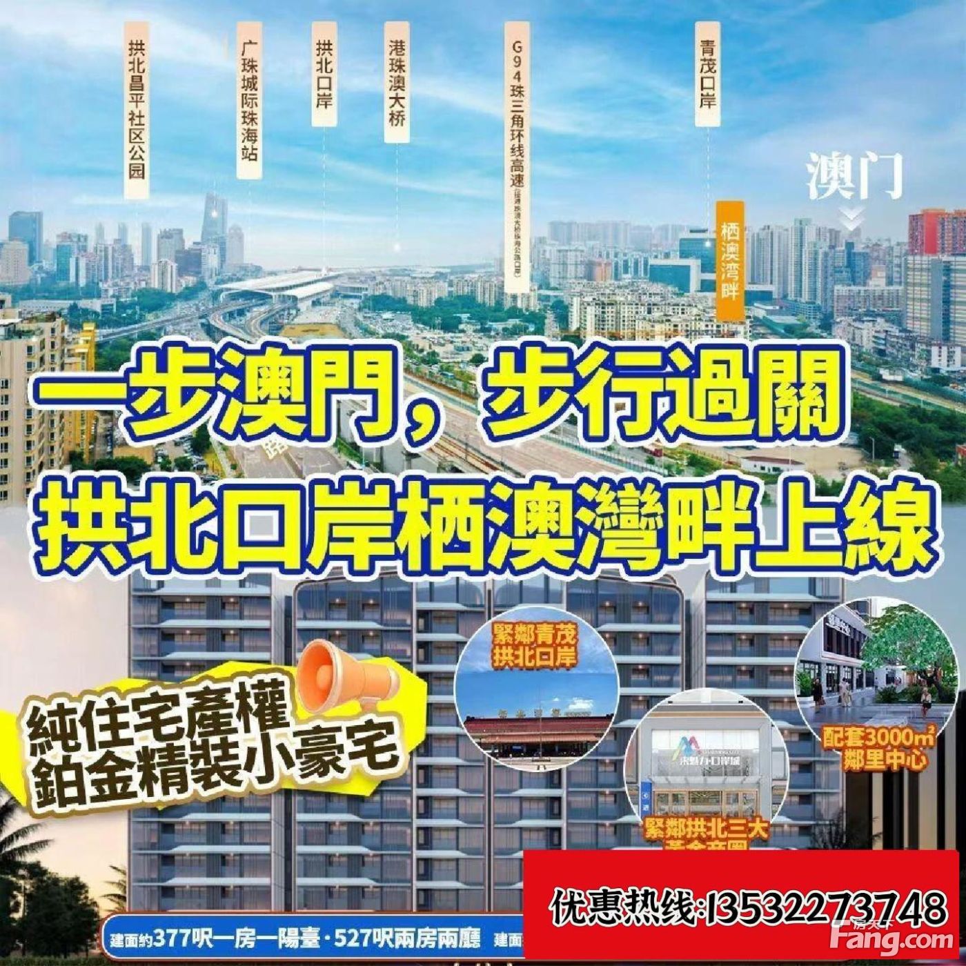 ①:购买新楼不收取任何费,我们是开发商直属总代理,通过网络(所带过去售楼部的客户都能享受到渠道团购優惠) ②:5年售前后持续跟进,包括出租、出售、平日的房屋打理等!后续可以帮您全程跟进,让您买房能省心省时 ③:港澳同胞和外地客户!非本地人以及珠海户籍都可以买,可以按揭! ④:专注对接港澳、外地客户群,解决处理及析、办理入户及人才证明!详细欢迎详谈!