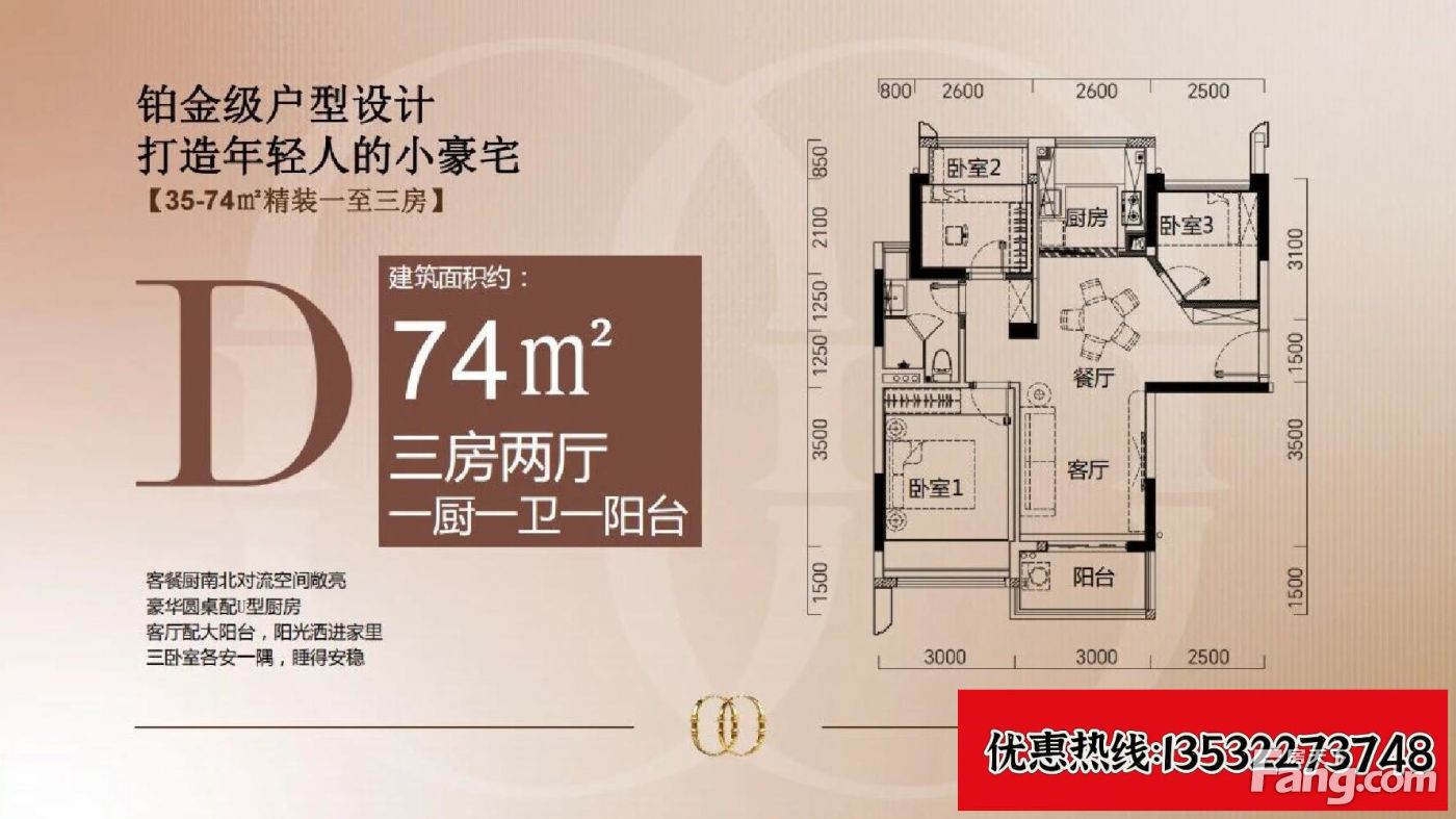 户型齐全,主打明卫,双阳台三居