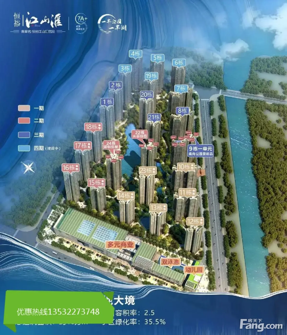 1、恒裕江山汇位于湖心路与香海路交汇处,真正的桥头堡,未来的不可限量。 2、小区建筑面积46万平米,湖心路大型楼盘,面向幸福河、背靠白藤湖,看湖景。 3、小区共分四期开发,共有24栋、3150户、人文素质小区。 4、自带1万㎡人工湖活水系统,大地幼稚园,水岸舞台,运动休闲广场,儿童活动区,1千㎡双游泳池,8万㎡综合商''''场 5、-110㎡,90%得.房.率 6、软基工程、防降板工艺、两年打造百年地基 7、豪装交楼,品.牌合同体现。