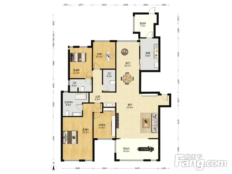 房屋拥有相对宽松的尺寸,布局通透,动静分离,设计豪华