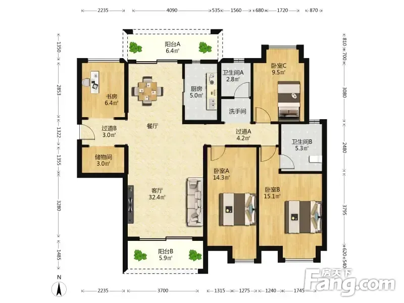 户型齐全,主打明卫,客厅朝南,双阳台,双卧朝南,主卧朝南三居