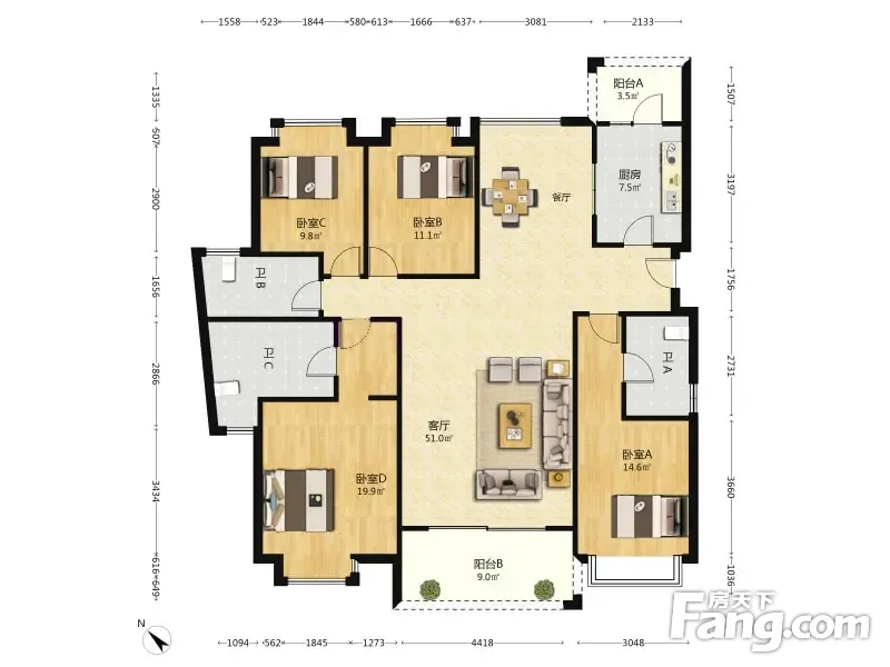 华发新城二期 4室2厅 165平