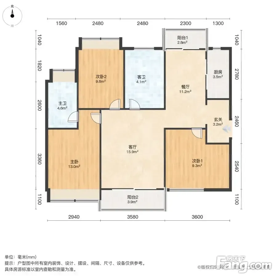 户型齐全,主打户型方正,明卫三居