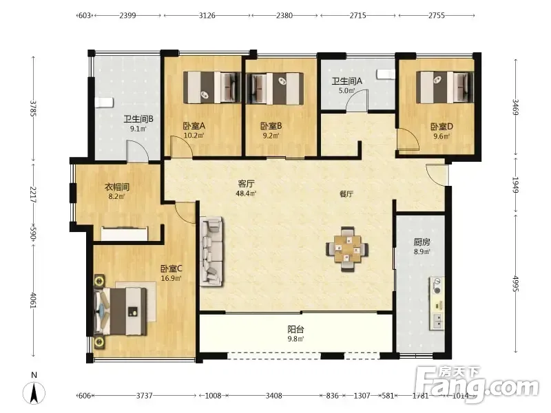 珠宾花园 4室2厅 134平