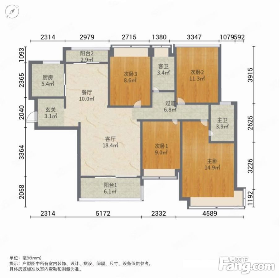 户型齐全,主打户型方正,动静分离,双阳台三居