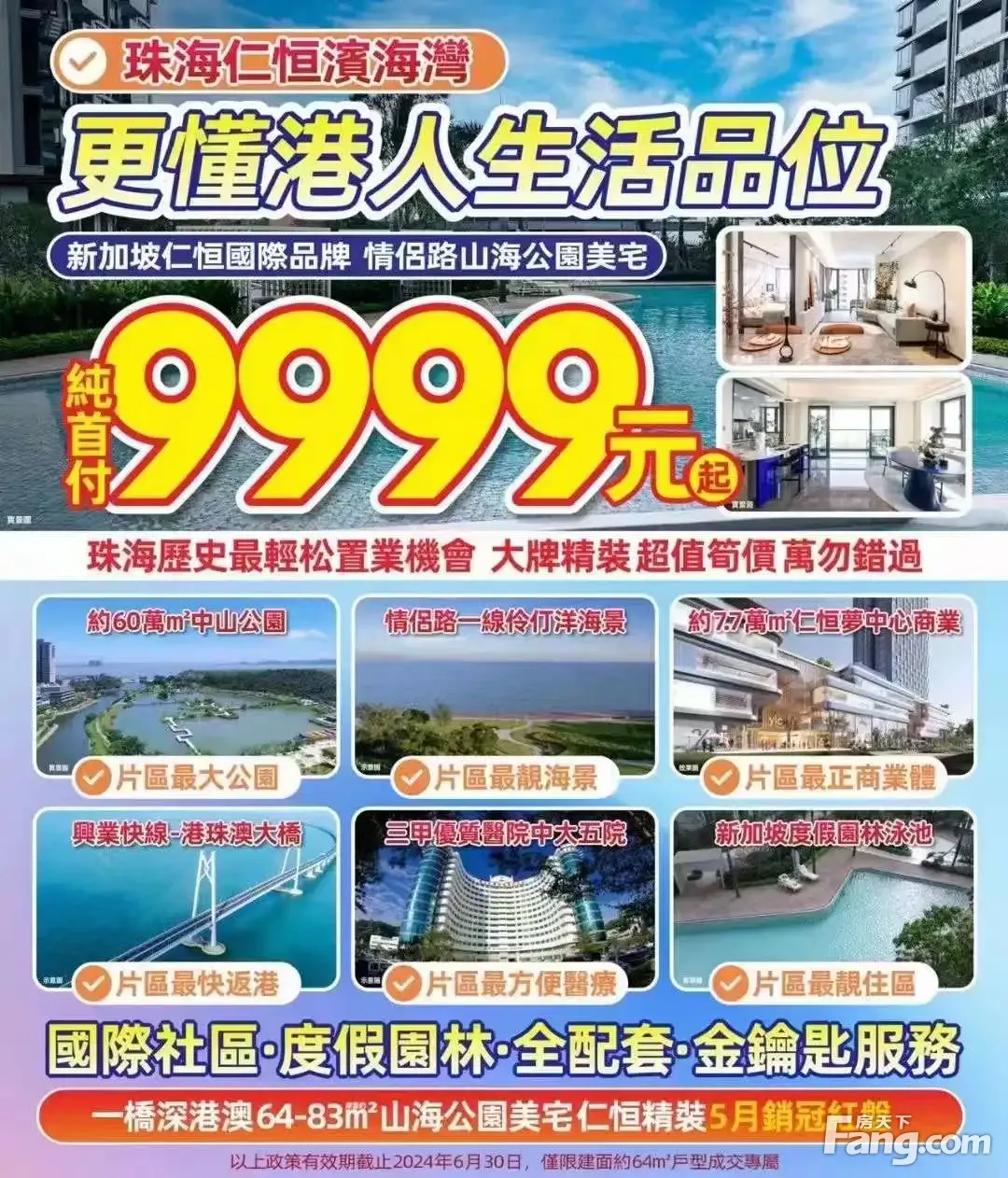 中:项目旁规划用地,极大方便您接送小朋友放学回家,且有珠海北大附属(、、)和珠海附属外国语(、、)等,享全龄段资源环伺。 :项目旁、规划用地,极大方便您接送小朋友放学回家, 商场:高新及北站宝龙城商圈 医院:中山附属第五医院(三甲)、珠海高新区人民医院(二甲)等医疗配套,时刻守护家人安康。 其他:项目约60万m2珠海中山公园,IMAX公园景观。资源,!山主贵,水主财!项目拥伶仃洋海景、留诗山脉,缔造出山海共享体验! 周边公园景区资源丰富,包括珠海渔女/日月贝/情侣路等珠海城市文化地标,中山公园