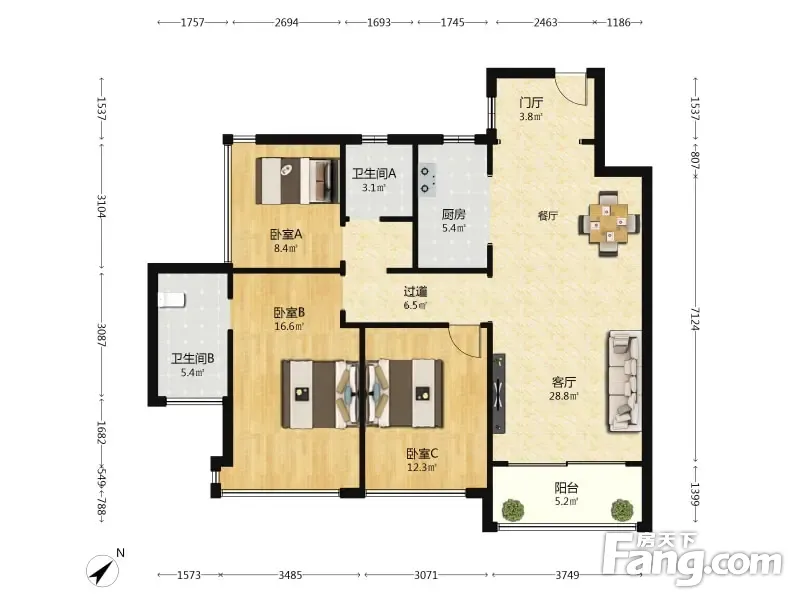 3室2厅1卫