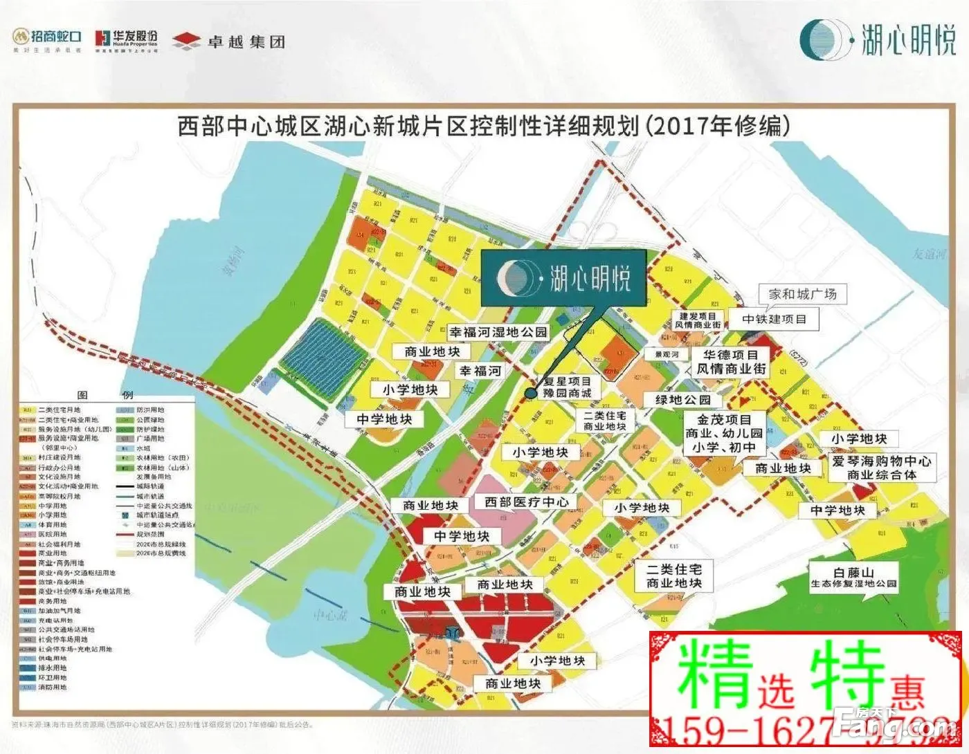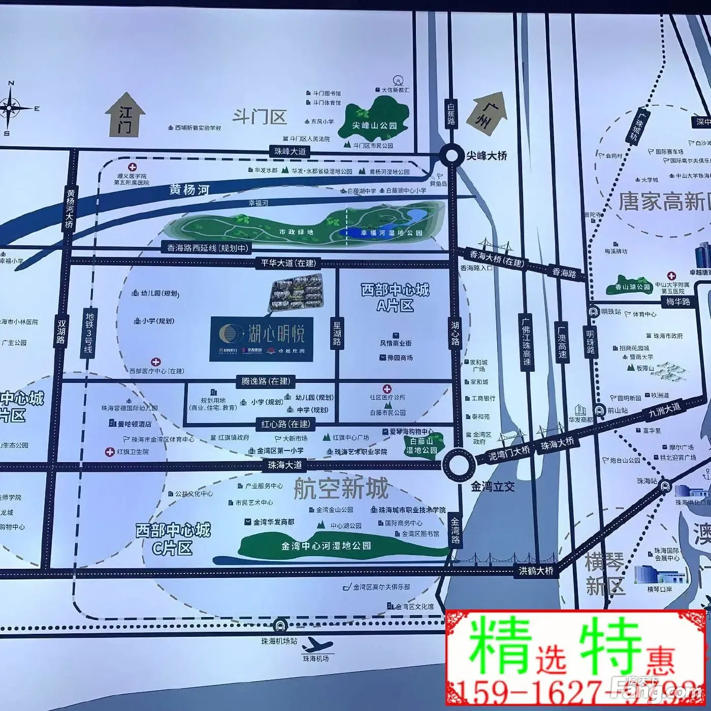 【】市一级齐正,周边规划6所、4所、2所、华中师范附属(规划) 【休闲娱乐】1.5万平邻里中心,5万平商务体,8.5万平星空主题公园,生态湖景 【交通设施】珠海大桥、香海大桥(在建:连接湖心路和平华大道)、广佛江珠轻轨(规划) 【商业百货】家和城商场、深圳岁宝(在建)、华发商都(在建)、上海·豫园商城(待建) 【周边环境】生态配套:幸福河湿地公园(在建)、绿地公园(在建) 【医疗配套】社区医疗中心(在建)、西部医疗中心(在建)、遵医五院、广东省人民医院珠海医院
