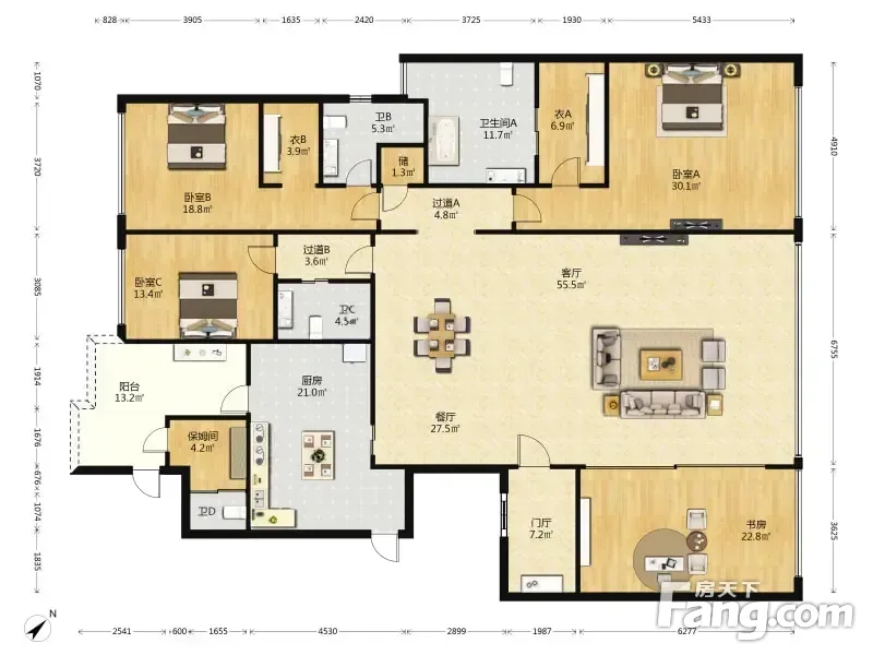 户型齐全,主打动静分离,采光充足四居
