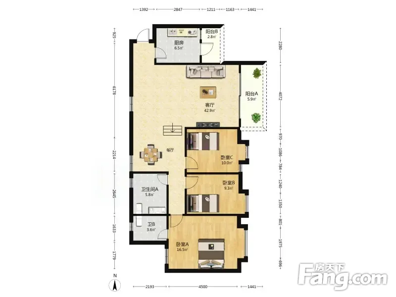 户型齐全,主打明卫,双阳台三居