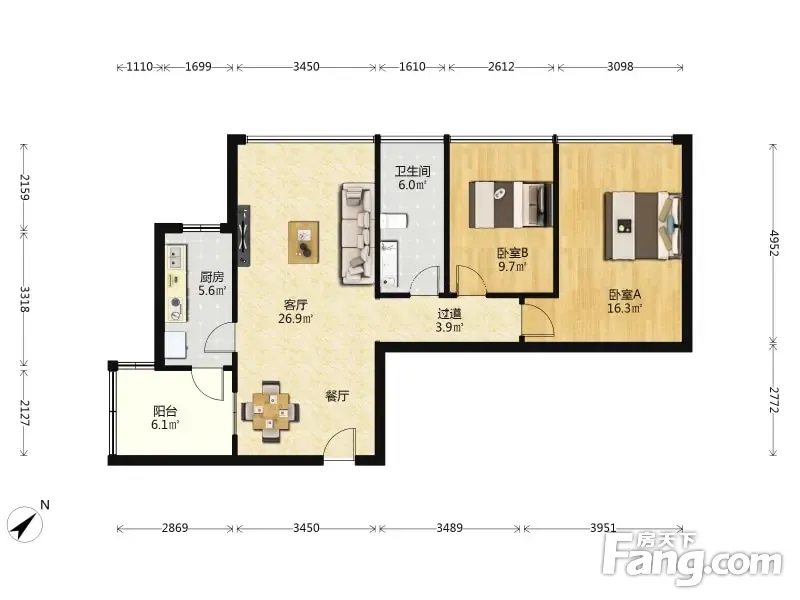 精选必看好房 北向看商业街区 富华里 2室2厅 89.7平