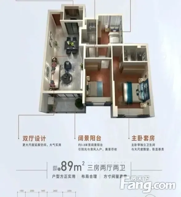 户型齐全,主打动静分离,主卧带卫三居