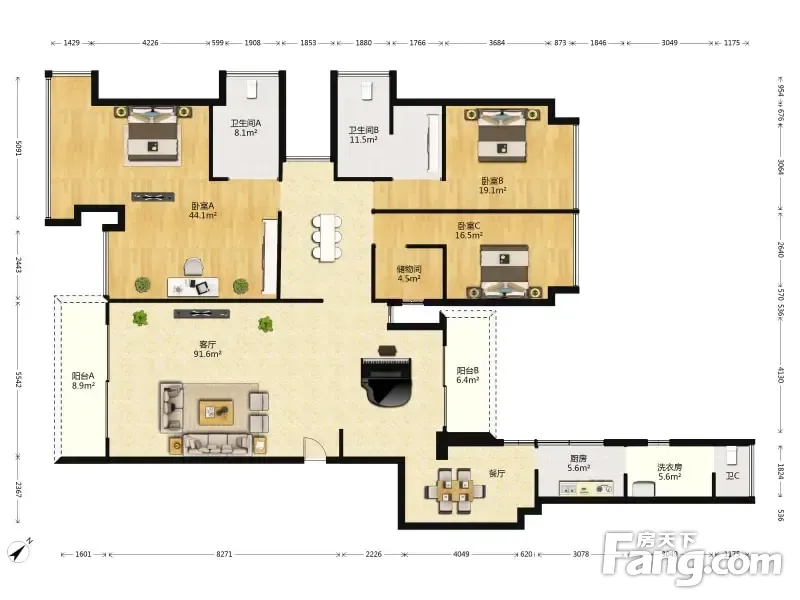 房屋拥有相对宽松的尺寸,布局通透,动静分离,设计豪华