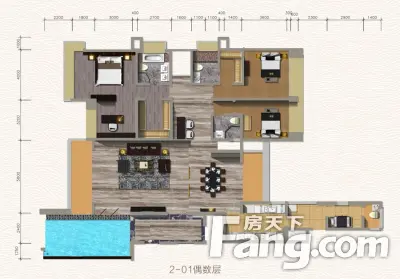 万菱情侣湾一号户型主要有212平-302平的户型方正,主卧朝南,主卧带卫的四居 、194平-220平的动静分离,主卧带卫,大面宽阳台的三居 、315平-346平的全明格局,户型方正,主卧带卫的五居 。