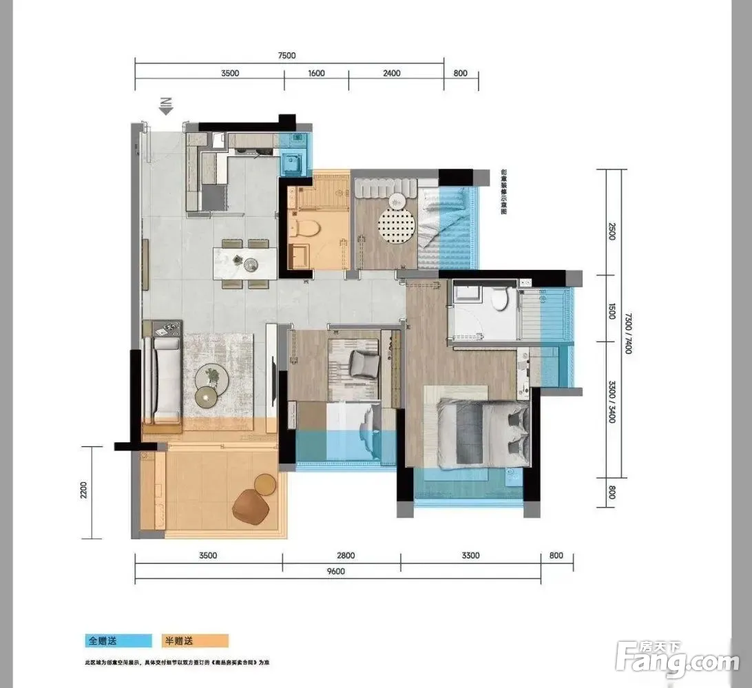 业主急售 泰盈玖悦湾 标准两房南向户型带阳台和露台