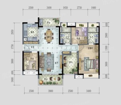 户型齐全,主打南北通透,全明格局四居