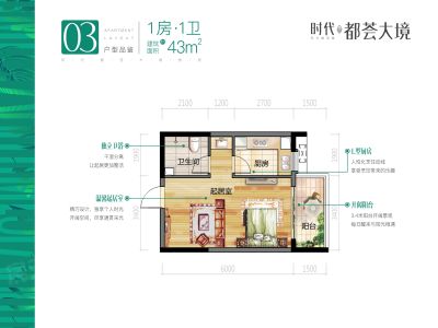 时代都荟大境标准1房1厅 东南朝向 高楼层 视野开阔