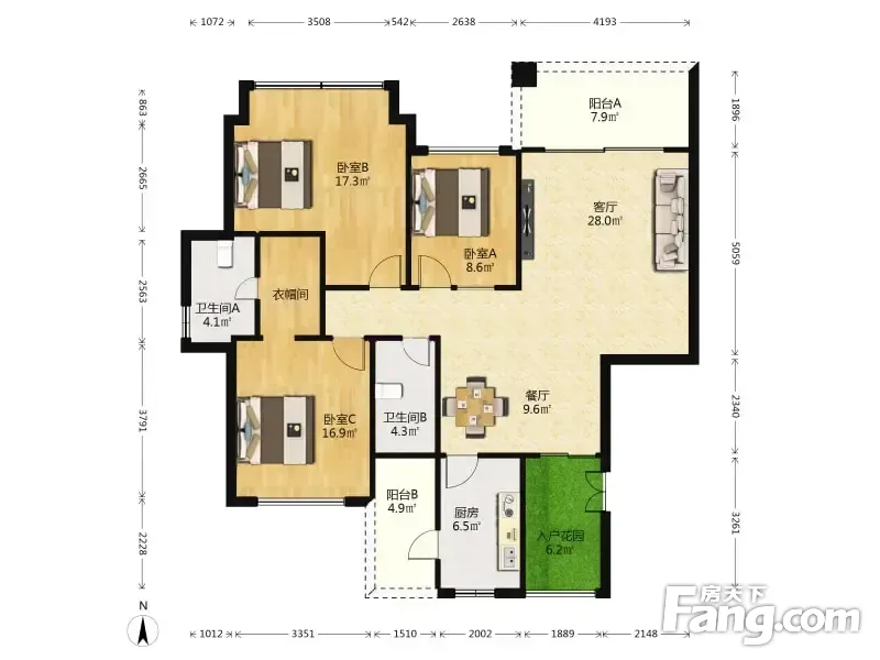 户型齐全,主打明卫,户型方正,双阳台,主卧朝南三居