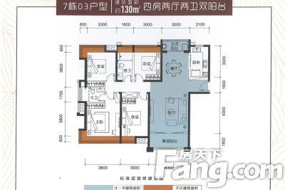 户型齐全,主打户型方正,动静分离,主卧带卫,双阳台四居