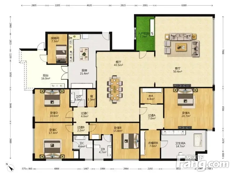 户型齐全,主打动静分离,采光充足四居