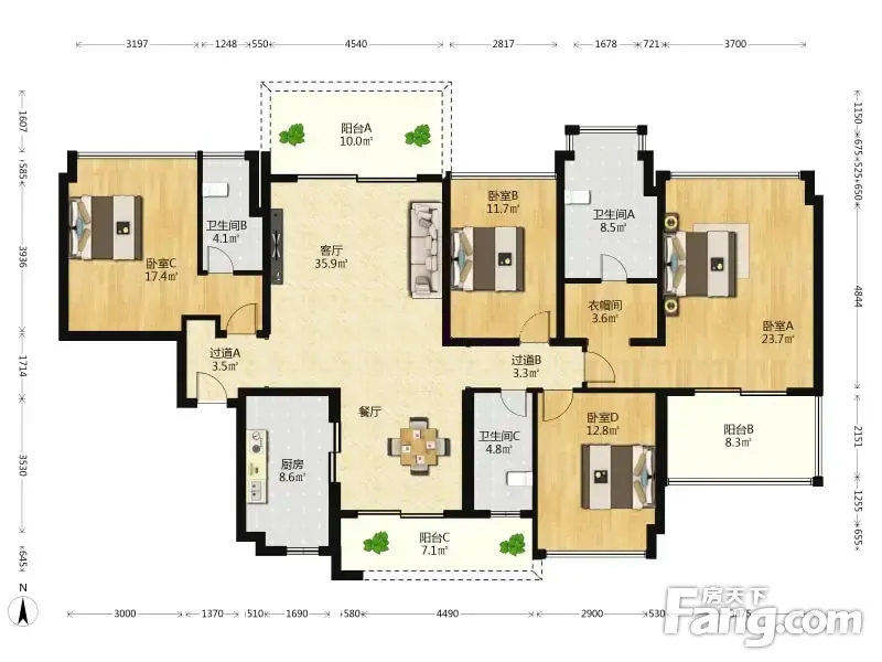 华发四季 4室2厅 南