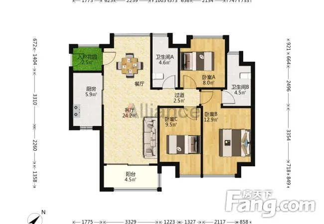 户型齐全,主打户型方正,明卫,双阳台,双卧朝南三居