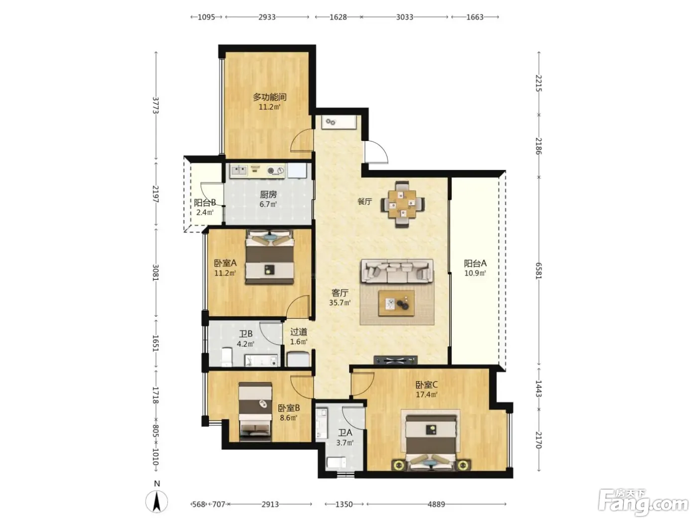 诺德国际花园4室2厅南西南