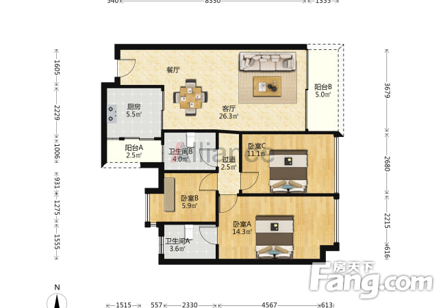 3室2厅