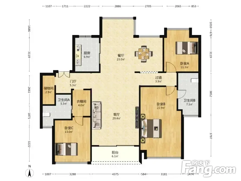 户型齐全,主打全明格局,户型方正四居