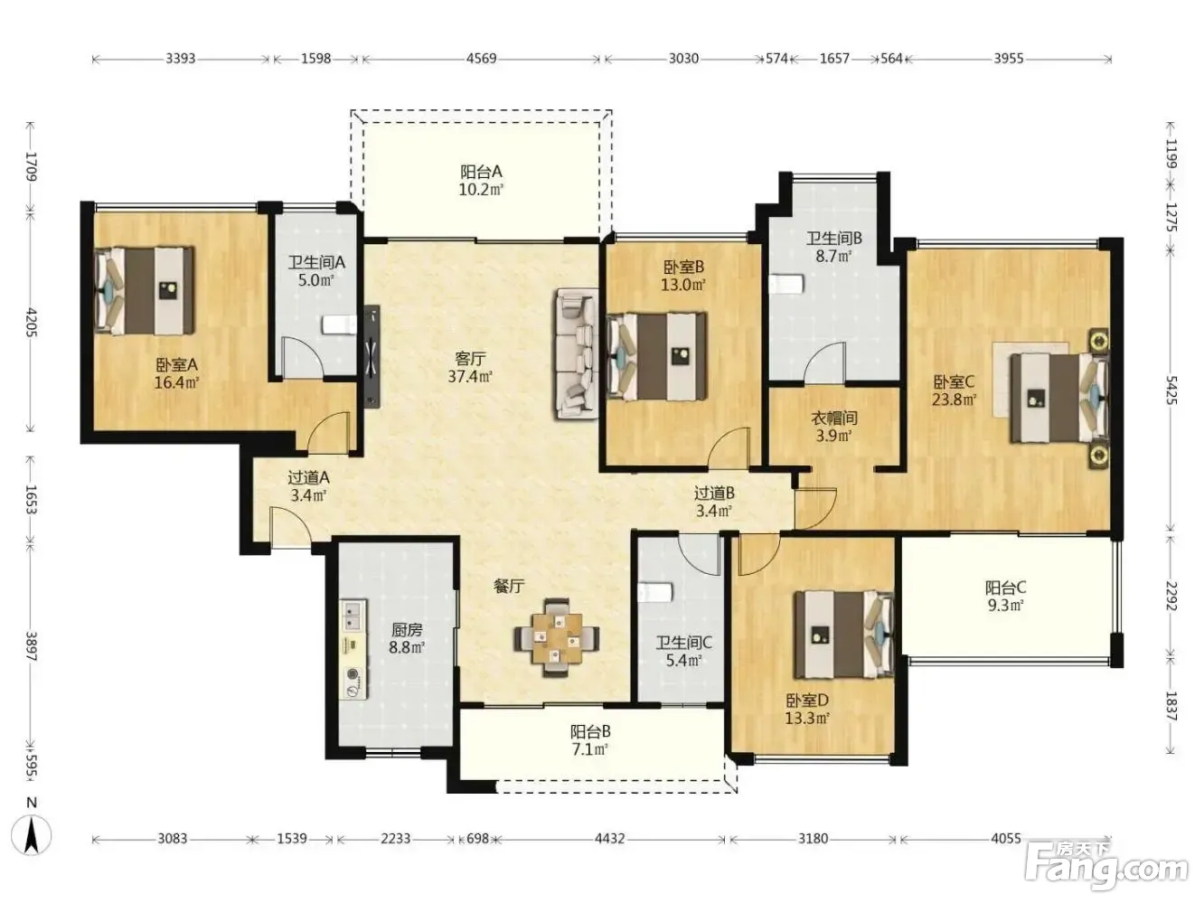 华发四季 4室2厅 南 北