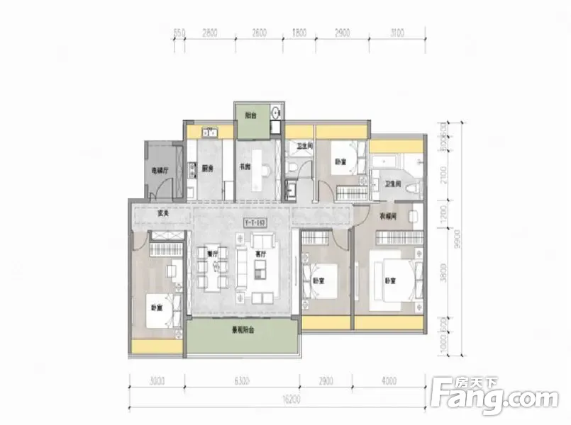 户型齐全,主打南北通透,户型方正,采光充足,三开间朝南,主卧带卫,U型厨房,大面宽阳台,带露台四居
