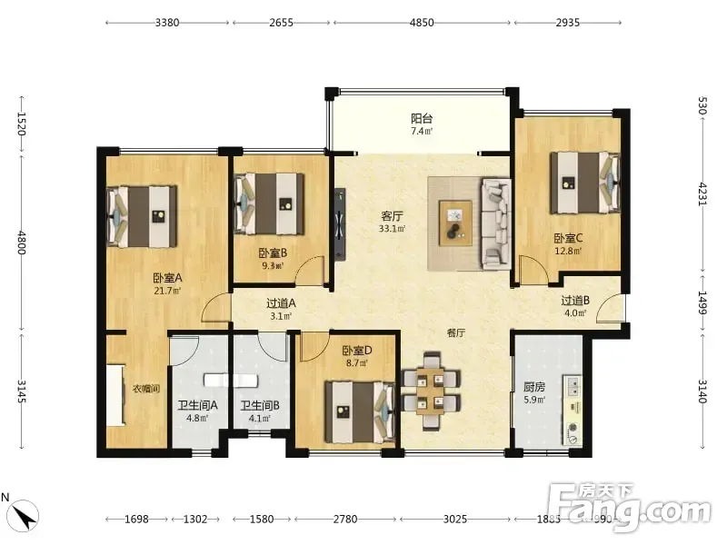 房屋拥有相对宽松的尺寸,布局通透,动静分离,设计豪华