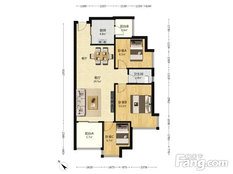 鸿泰八零 3室2厅 南