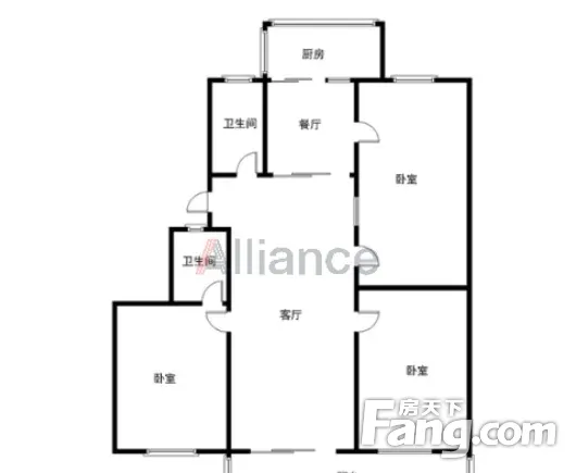 户型齐全,主打明厨,明卫,客厅朝南,双阳台三居