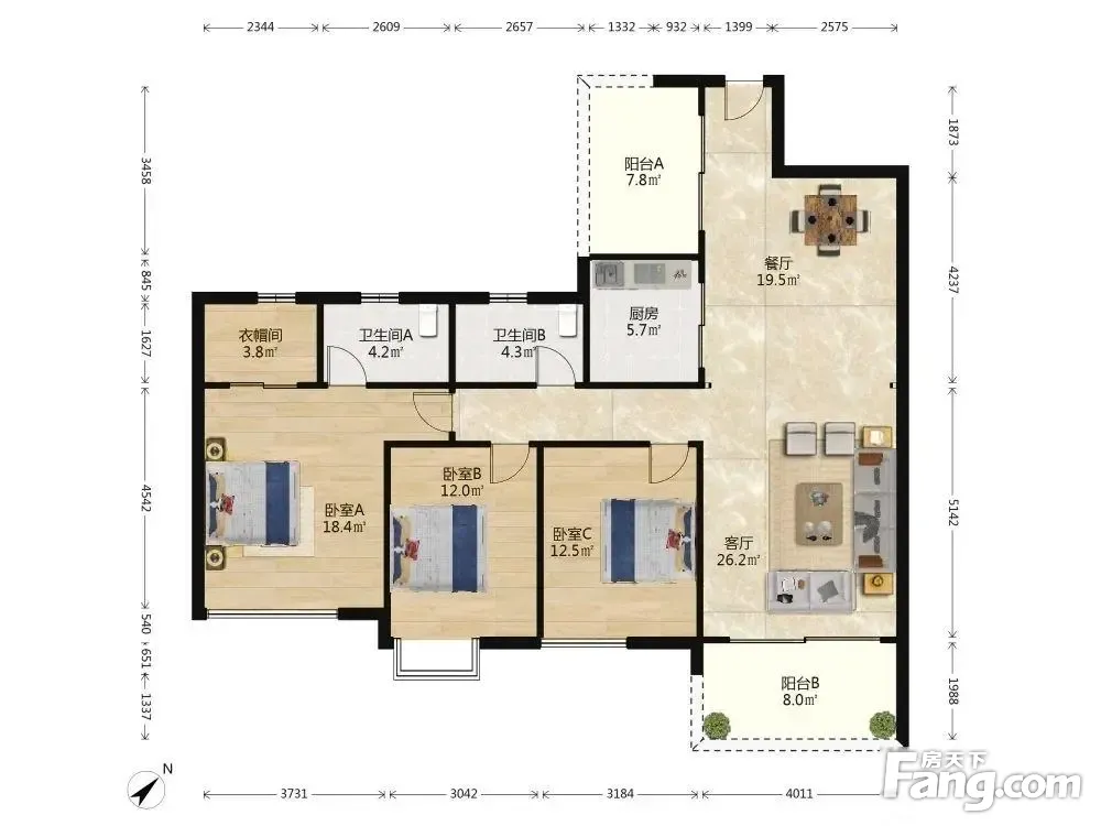 户型齐全,主打南北通透,全明格局三居