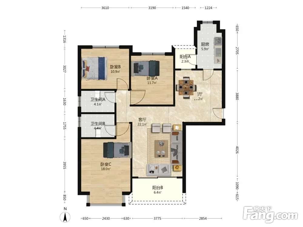 3室2厅1卫