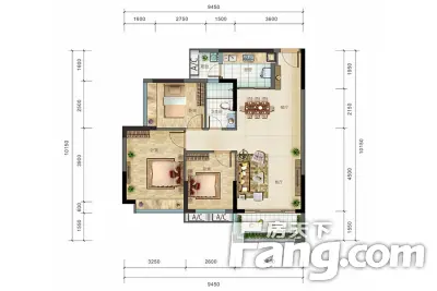 户型齐全,主打户型方正,动静分离,双阳台三居