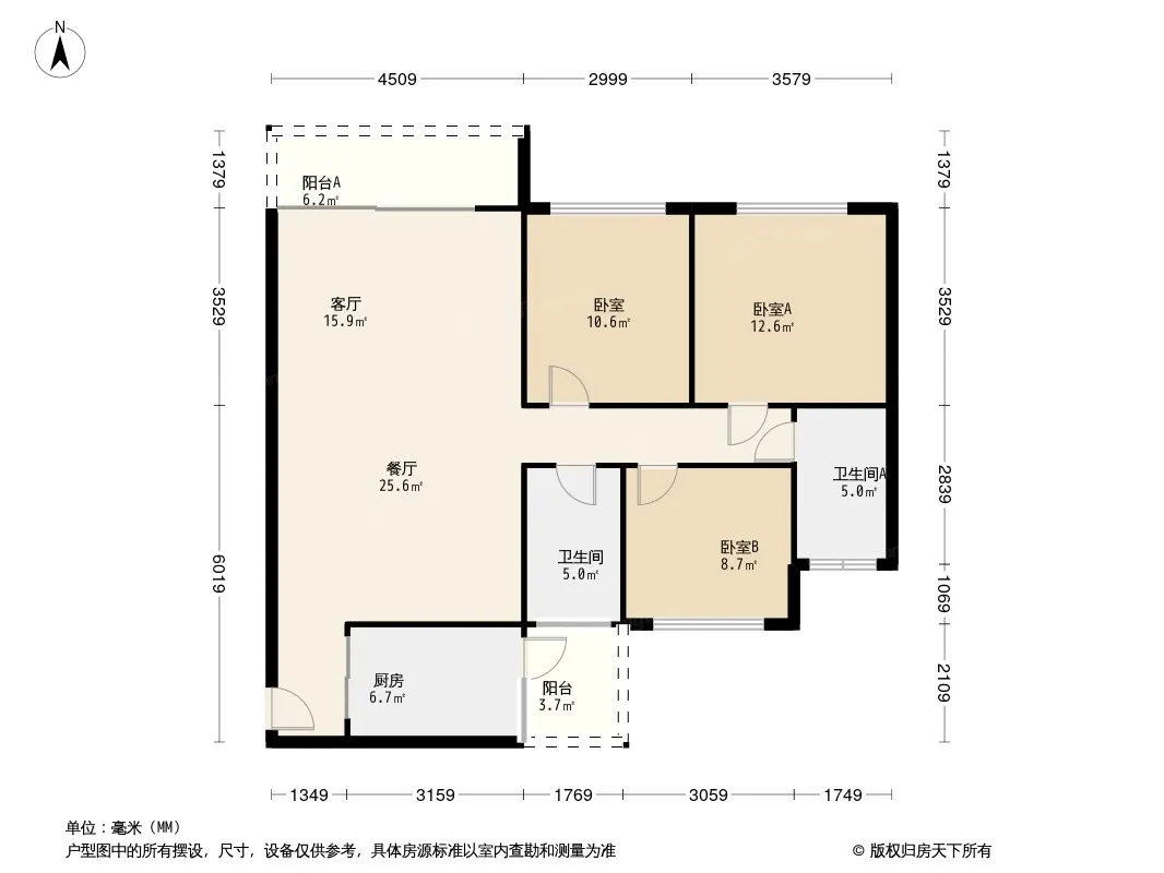 户型齐全,主打南北通透,全明格局三居