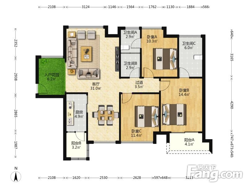 户型齐全,主打明卫四居