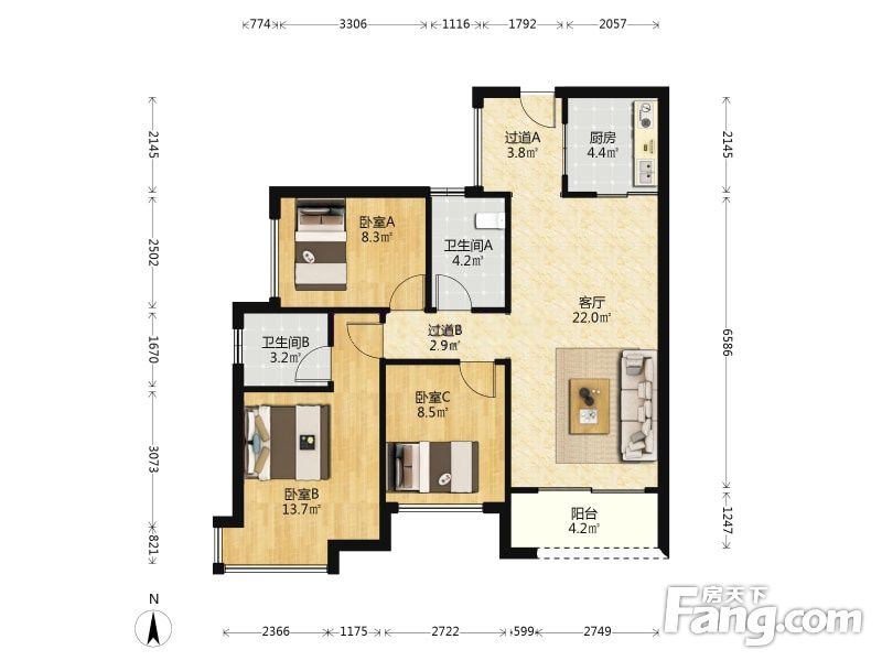 3室2厅1卫