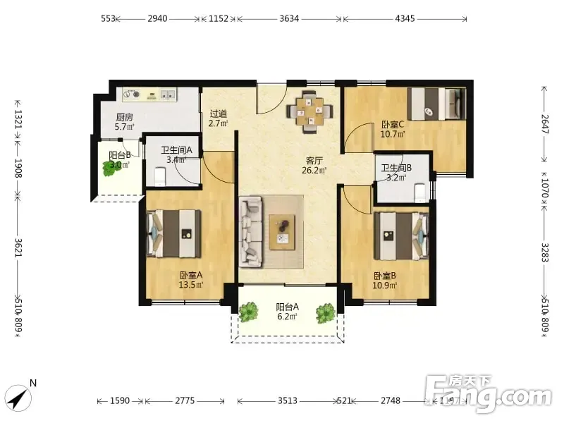 户型齐全,主打户型方正,采光充足,主卧带卫,L型厨房,大面宽阳台三居