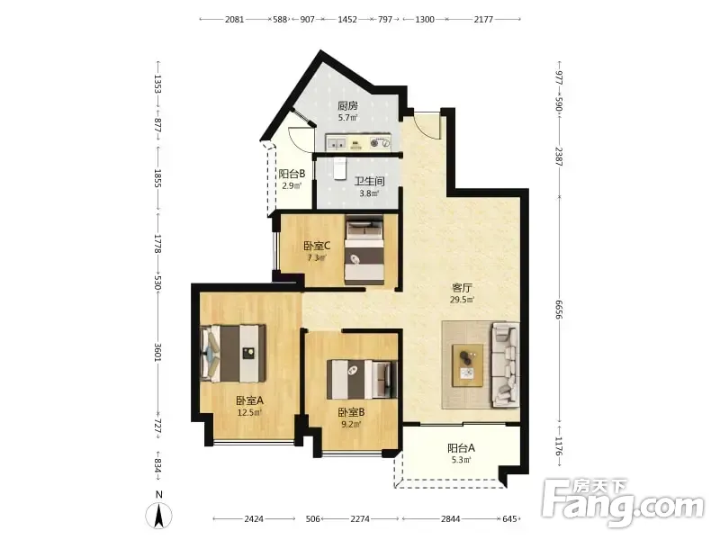 3室1厅2卫